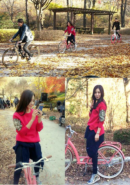 11일 한채아의 소속사 가족 액터스는 가을 단풍이 든 숲속에서 한채아가 자전거를 타고 달리는 모습이 담긴 사진을 공개했다. 이 사진에서 한채아는 스포티한 맨투맨 티셔츠에 운동화로 스포티한 이미지를 연출했다.