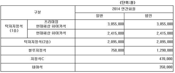 정상가보다 평균 54% 할인 된 금액으로 가입할 수 있는 2014시즌 연간회원은 일반회원과 법인회원으로 나누어 모집하고, 탁자지정석, 지정석, 내야석으로 구분하여 판매하며, 탁자지정석과 지정석의 경우 팬들의 편의성을 고려하여 가입 시 원하는 자리를 직접 선택할 수 있도록 준비하였다.
