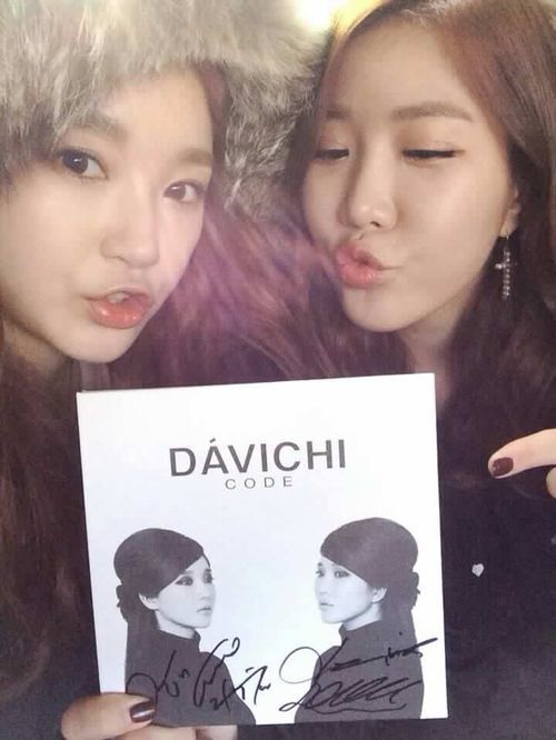다비치는 새 앨범 발매를 기념해 11일 SNS를 통해 'DAVICHI CODE(다비치코드)'명의 앨범을 들고 귀여운 표정을 지은 사진을 공개했다.