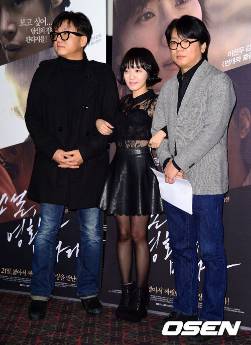 박진성 감독, 배우 류혜린, 박진석 감독이 포토타임을 하고 있다.