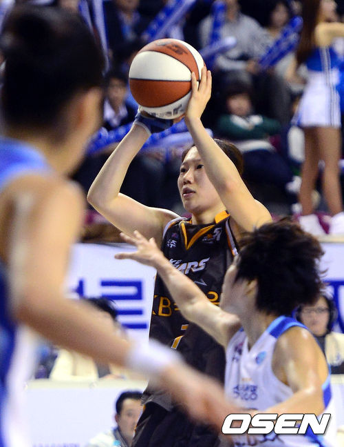 11일 오후 용인실내체육관에서 열린 '우리은행 2013-2014 여자프로농구' 삼성생명과 KB스타즈의 경기, 강아정이 미들슛을 시도하고 있다.
