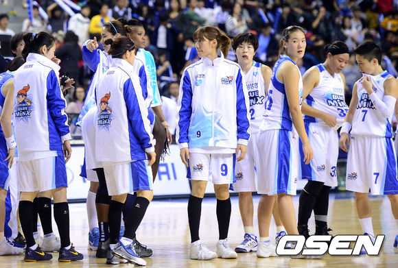 경기에서 패한 삼성생명 선수들이 아쉬워하고 있다./youngrae@osen.co.kr