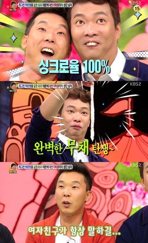 11일 오후 방송된 KBS 2TV 예능프로그램 '대국민 토크쇼 안녕하세요'에서는 박준형을 닮은 외모 때문에 대인기피증까지 생긴 배태훈 씨가 출연해 고민을 토로했다.
