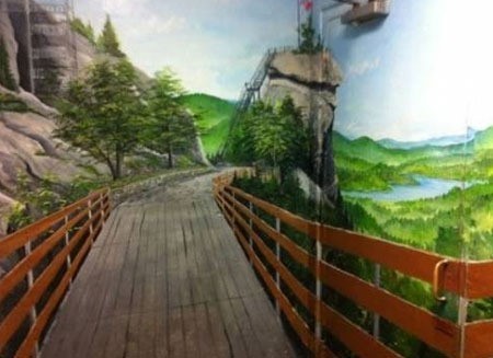 하지만 이 벽은 단순한 벽이 아니었다. 벽의 그림이 세밀하게 포함돼 있어 마치 실물처럼 보이기도 한다. 무엇보다 벽화에 빠지면 화장실에서 나가기가 힘들다. 화장실의 손잡이가 그림에 동화돼 잘 보이지 않기 때문이다.
