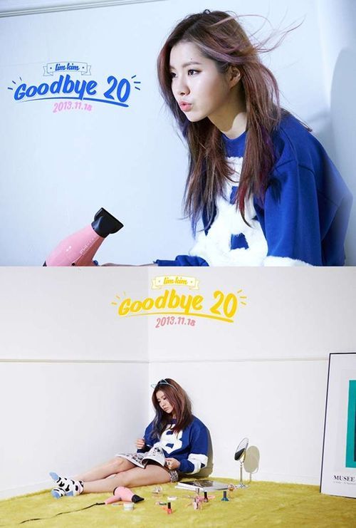 이날 공개된 티저이미지 속 김예림은 큼지막한 파란색 풀오버에 아찔한 핫팬츠, 그리고 고양이 머리띠까지 매치시킨 화사한 스타일링으로 등장한다. 이 티저이미지는 '굿바이 20' 뮤직비디오의 한 장면을 담은 것으로 친구들과 홈파티를 즐기는 스무 살 소녀의 모습을 표현했다.