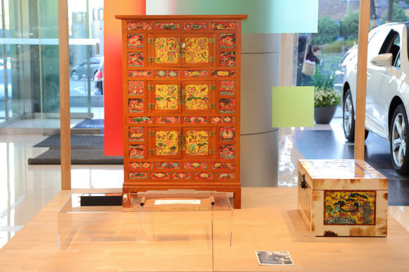 토요타 용산 전시장에는 화각사주함, 화각삼층장, 화감함이 전시된다.