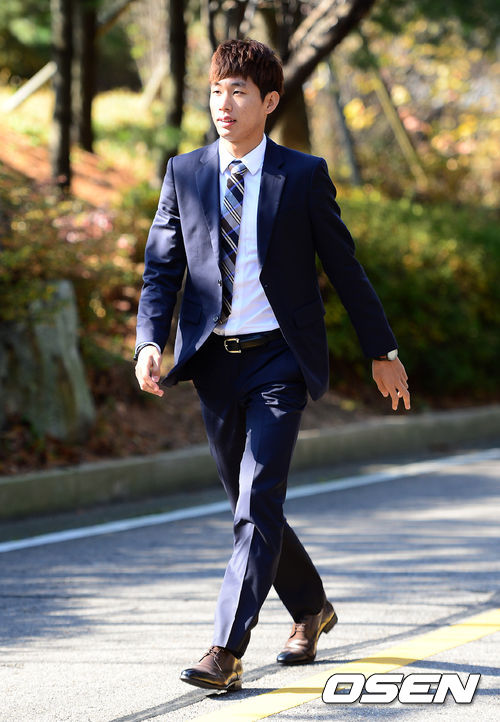 스위스와 러시아와의 A매치 평가전을 앞두고 축구대표팀 윤일록이 12일 오전 파주 NFC로 들어서고 있다.