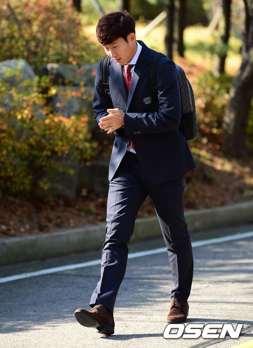 스위스와 러시아와의 A매치 평가전을 앞두고 축구대표팀 손흥민이 12일 오전 파주 NFC로 들어서고 있다.