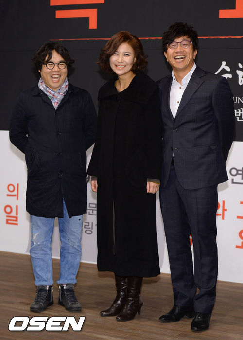 정은표 정재은 박철민이 포토타임을 갖고 있다.
