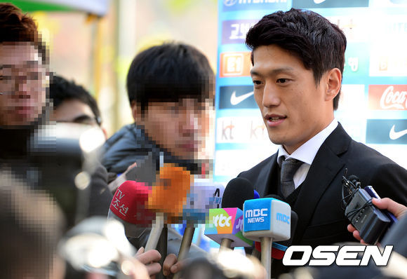 스위스와 러시아와의 A매치 평가전을 앞두고 축구대표팀 이청용이 12일 오전 파주 NFC로 들어서며 인터뷰를 하고 있다.