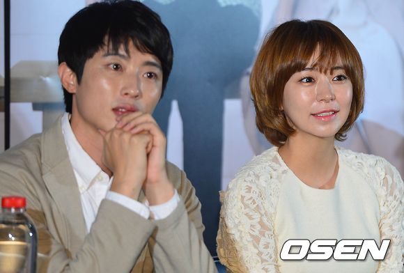 배우 임지규와 심이영이 취재진의 질문을 듣고 있다.