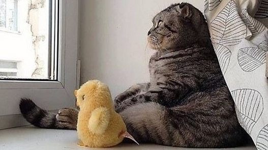 사진 속 고양이는 앉은 채로 나 홀로 창밖을 보며 세상을 다 내려놓은 듯한 모습을 하고 있어 보는 이들의 웃음을 자아내게 하고 있다.