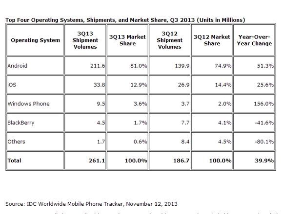 라몬 라마스(Ramon Llamas) IDC 모바일기기 리서치 매니저는 "안드로이드와 윈도우 폰의 강세가 3분기에도 계속됐다"며 "이 두 운영체제의 스마트폰은 낮은 가격의 스마트폰을 제공하면서 가격경쟁력을 유지하며, 스마트폰 시장 성장을 이끌고 있다"고 분석했다.