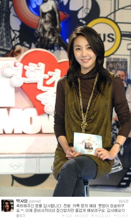 박사임 아나운서는 지난 12일 자신의 트위터에 "축하해주신 분들 감사합니다. 전화, 카톡, 문자 제때 못 받아 죄송하고요"라는 글을 게재하며 결혼 축하에 대한 감사의 마음을 전했다.