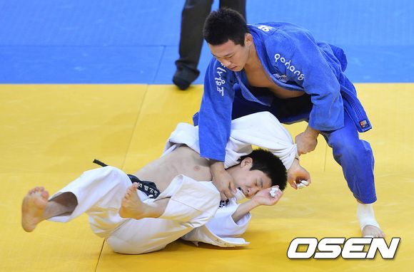 -81kg급 2회전 왕기춘(포항시청)과 전준호(한양대)의 경기, 왕기춘이 한판승을 거두고 있다.