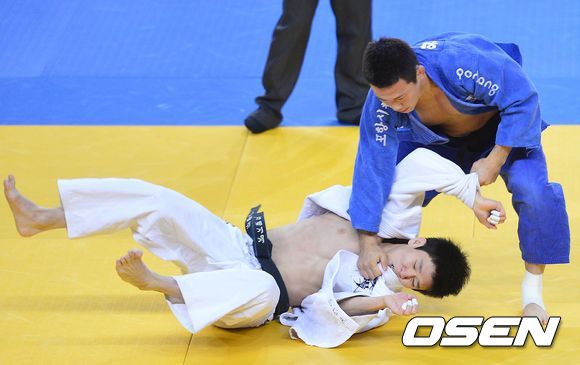 -81kg급 2회전 왕기춘(포항시청)과 전준호(한양대)의 경기, 왕기춘이 한판승을 거두고 있다.