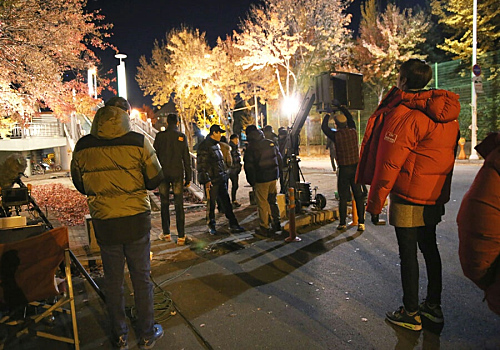 사진 속에는 배우와 현장 스태프들의 분주한 모습이 담겨있다. 추운 날씨 때문에 패딩을 입고 야외촬영을 하는 모습이 눈길을 끈다.