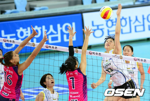 13일 오후 인천계양체육관에서 열린 '2013-2014 NH농협 V리그' 여자부 흥국생명과 도로공사의 경기 1세트 하준임이 공격을 시도하고 있다.