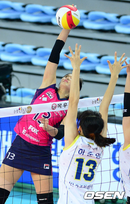 13일 오후 인천계양체육관에서 열린 '2013-2014 NH농협 V리그' 여자부 흥국생명과 도로공사의 경기 1세트 박성희가 공격을 시도하고 있다.
