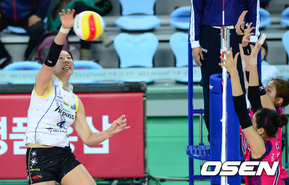 13일 오후 인천계양체육관에서 열린 '2013-2014 NH농협 V리그' 여자부 흥국생명과 도로공사의 경기 2세트 김선영이 공격을 시도하고 있다.