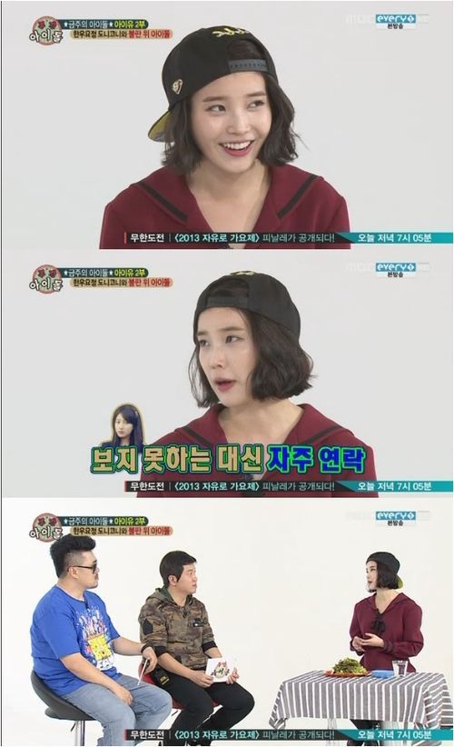 아이유는 13일 방송된 MBC에브리원 예능프로그램 ‘주간 아이돌’에서 수지가 자신에 대해 어떤 친구라고 소개했을 것 같으냐는 질문을 받고 “자석 같은 사이라고 말했을 것 같다”고 답을 맞췄다.