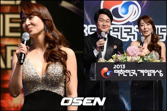 '지스타 2013'의 개막 하루전인 13일 오후 부산 영화의 전당 하늘연극장에서 열린 '2013 대한민국 게임대상'에서 전용준 캐스터와 정소림 아나운서가 진행을 하고 있다.