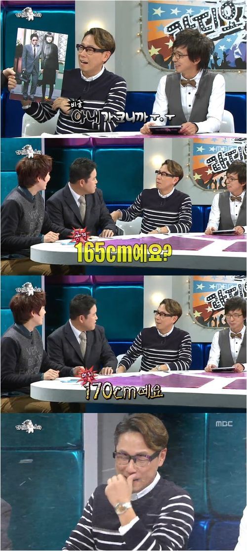 그는 “아내가 175cm다”고 말을 했고, 김구라는 “(윤종신 씨는) 165cm냐”고 물었다. 윤종신은 170cm라고 주장했고 김구라는 “말도 안 되는 소리”라고 말해 웃음을 자아냈다.