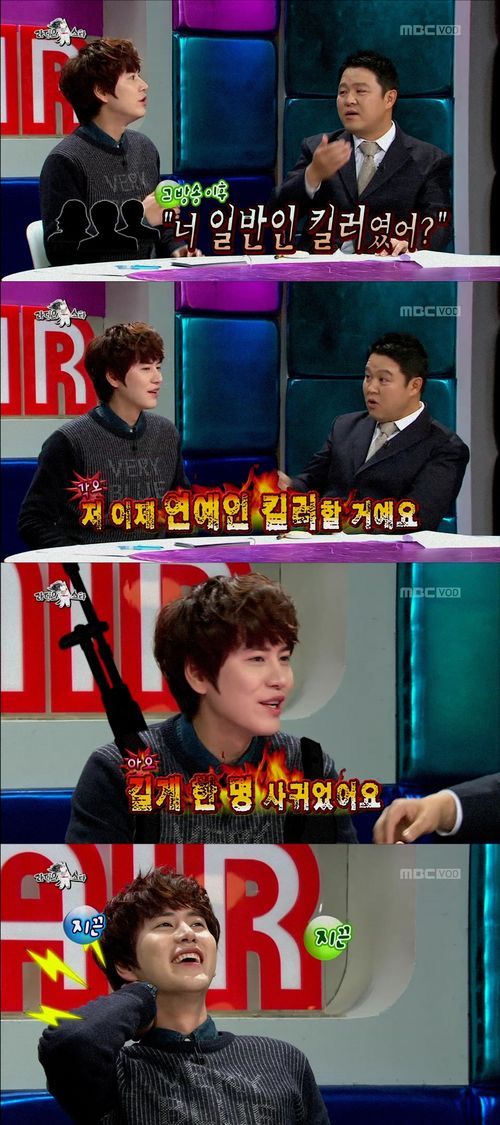 최현우가 “도대체 몇 명을 사귀었길래”라고 말하자 규현은 “길게 한 명 사귀었다”고 당황해 하며 뒷목까지 잡아 출연진을 폭소케 했다.