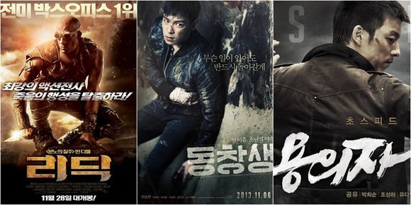 지난 6일 개봉, 흥행 순항 중인 영화 '동창생'을 통해 감탄을 자아내는 액션을 선보인 최승현과 오는 28일 개봉 예정인 영화 '리딕'에서 우주 최강의 전사로 열연한 빈 디젤, 오는 12월 개봉 예정인 영화 '용의자'에서 강도 높은 액션 연기를 선보이는 공유 등 세 남자배우가 스크린에서 액션 대결을 펼칠 예정인 것.