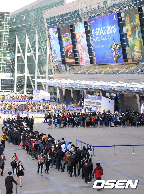 14일 부산 해운대 벡스코(BEXCO)에서 열린 국제게임전시회 '지스타 2013'에서 많은 관객들이 입장을 기다리고 있다.