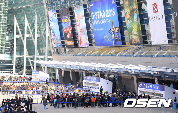 14일 부산 해운대 벡스코(BEXCO)에서 열린 국제게임전시회 '지스타 2013'에서 많은 관객들이 입장을 기다리고 있다.