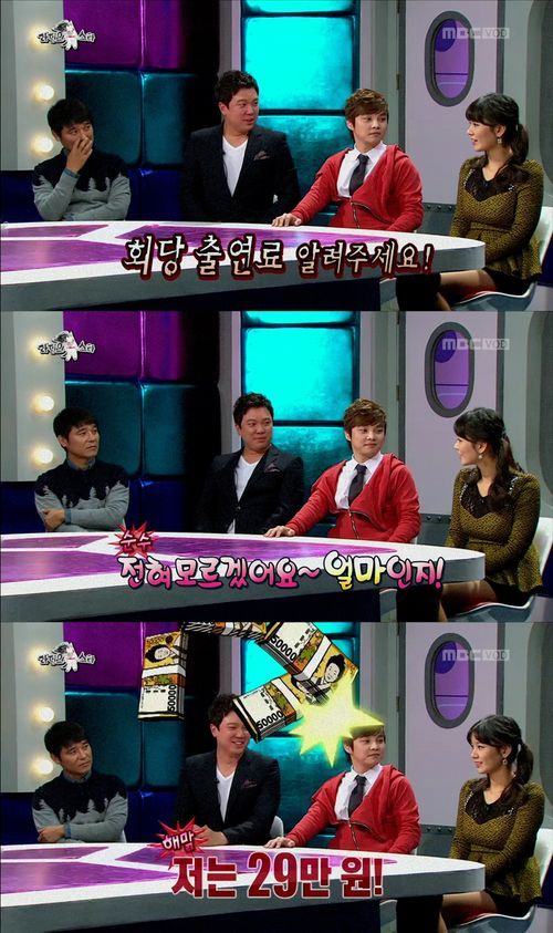 김구라는 맹승지에게 먼저 출연료를 말해보라고 했고 맹승지는 “나는 29만원 받는다”고 솔직하게 말해 출연진을 폭소케 했다.