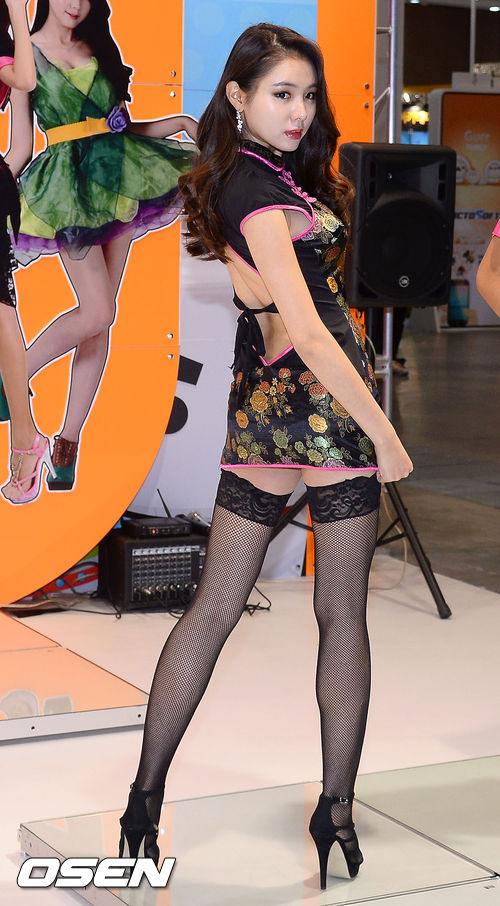 14일 부산 해운대 벡스코(BEXCO)에서 열린 국제게임전시회 '지스타 2013'에서 부스걸 민유린이 포토타임을 갖고 있다.