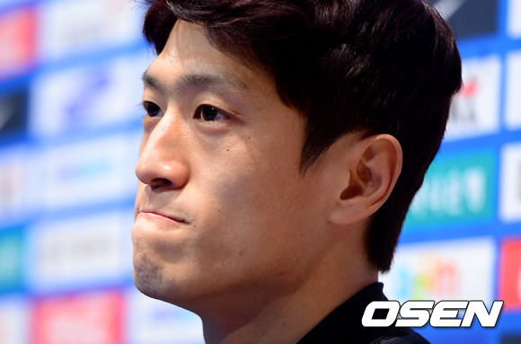 훈련에 앞서 이청용이 기자회견을 하며 질문에 귀기울이고 있다.