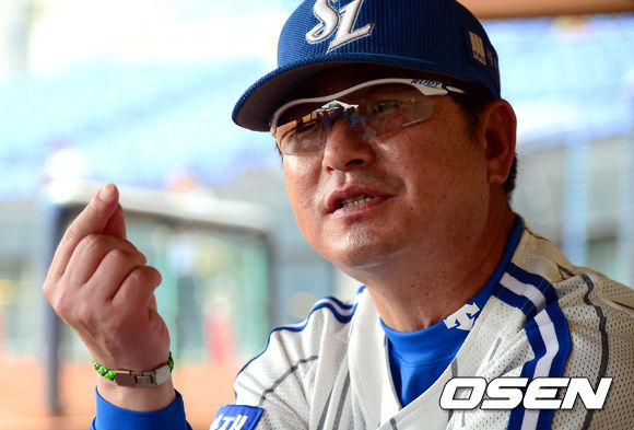 삼성 류중일 감독이 인터뷰를 하고 있다.