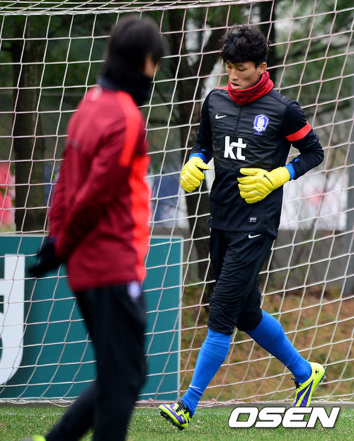 홍명보 감독이 김승규의 훈련을 지켜보고 있다.