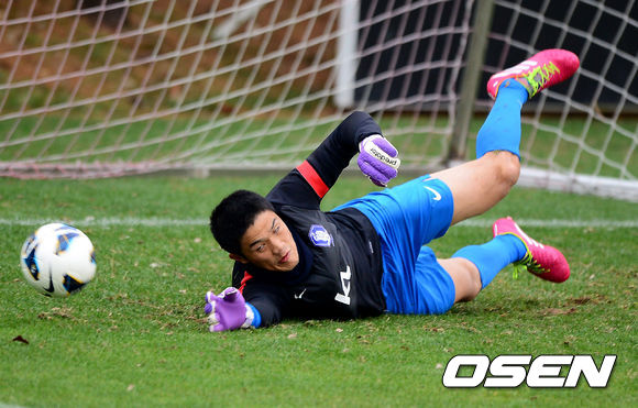 정성룡 골키퍼가 훈련을 하고 있다.