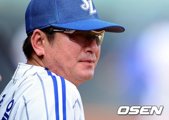 삼성 류중일 감독이 선수들의 훈련을 바라보고 있다.