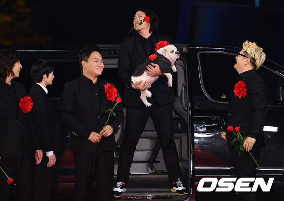 그룹 장미여관 육중완이 레드카펫을 밟고 있다.