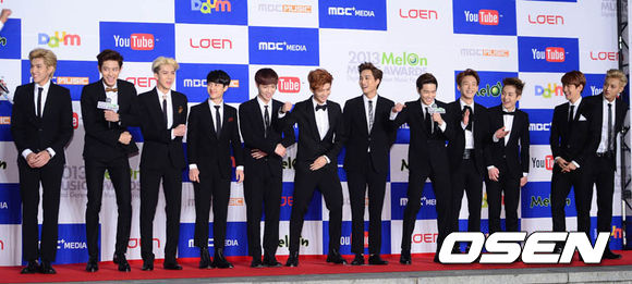 14일 오후 서울 방이동 올림픽공원 체조경기장에서 열린 '2013 멜론 뮤직 어워드'(이하 MMA) 레드카펫 행사에서 엑소가 포토타임을 가지고 있다.