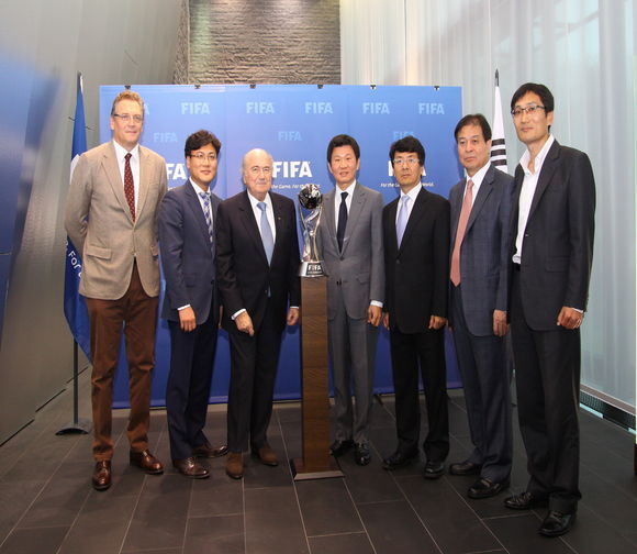 대한축구협회는 14일 오후(이하 한국시간) 정 회장이 "스위스 FIFA 본부에서 제프 블래터 FIFA 회장을 만나 2017 FIFA U-20 월드컵 비드북과 개최협약서를 전달했다"고 밝혔다. 이 자리에는 정몽규 회장, 블래터 회장과 함께 문화체육관광부 박위진 체육국장, FIFA 제롬 발케 사무총장, FIFA 무스타파 파미 경기국장이 참석했다.