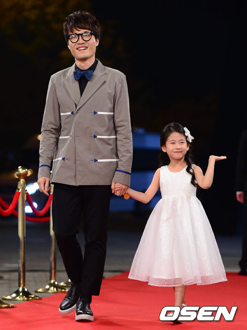 가수 조정치와 아역배우 박민하가 레드카펫을 밟고 있다.