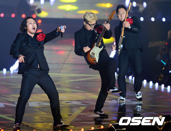그룹 장미여관이 화려한 공연을 펼치고 있다.