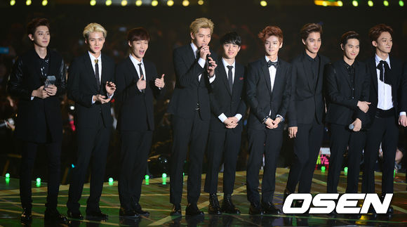 탑10에 오른 그룹 엑소가 수상소감을 말하고 있다.