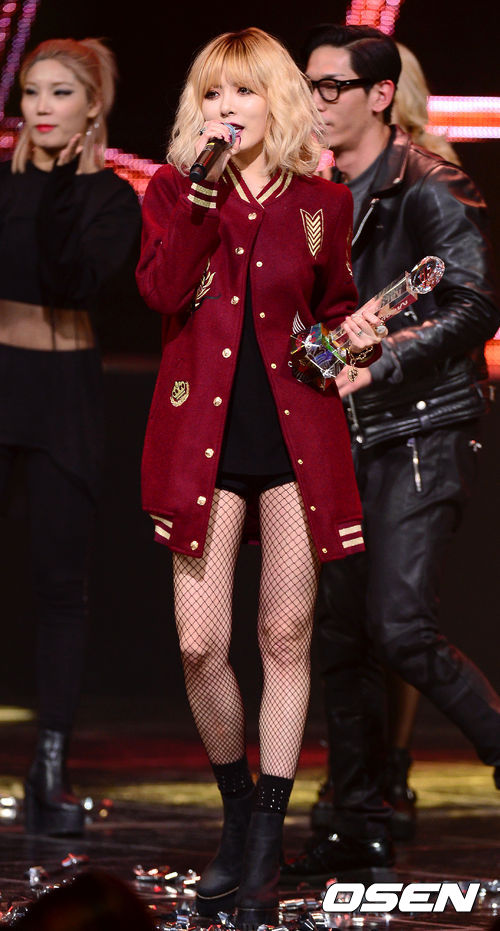 14일 오후 서울 상암동 CJ E&M에서 열린 Mnet '엠카운트다운(이하 엠카) 생방송 무대에서 엠카 1위를 수상한 트러블 메이커 현아가 앙코르 무대를 갖고 있다.