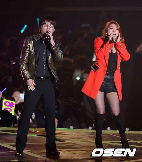 가수 신승훈과 에일리가 화려한 공연을 펼치고 있다.