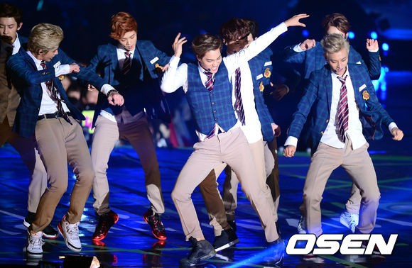 그룹 엑소가 화려한 공연을 펼치고 있다.