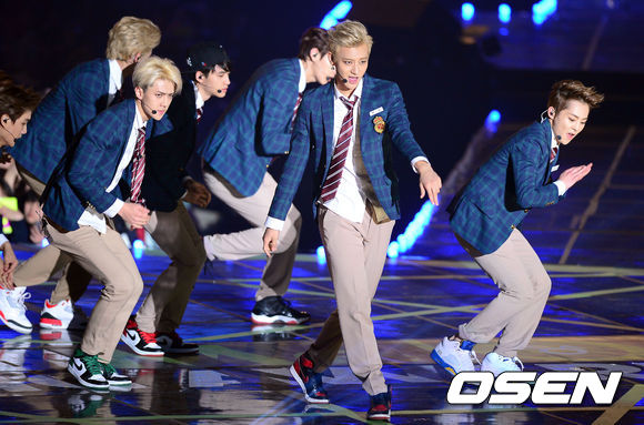 그룹 엑소가 화려한 공연을 펼치고 있다.