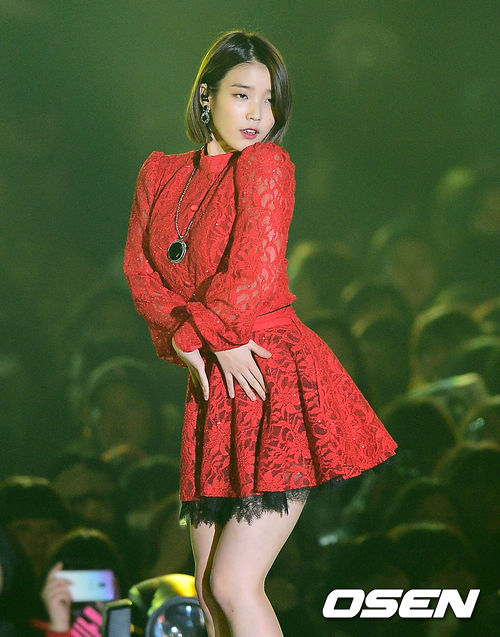 가수 아이유가 화려한 공연을 펼치고 있다.