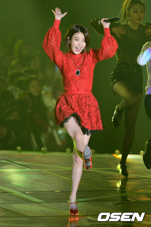 가수 아이유가 화려한 공연을 펼치고 있다.
